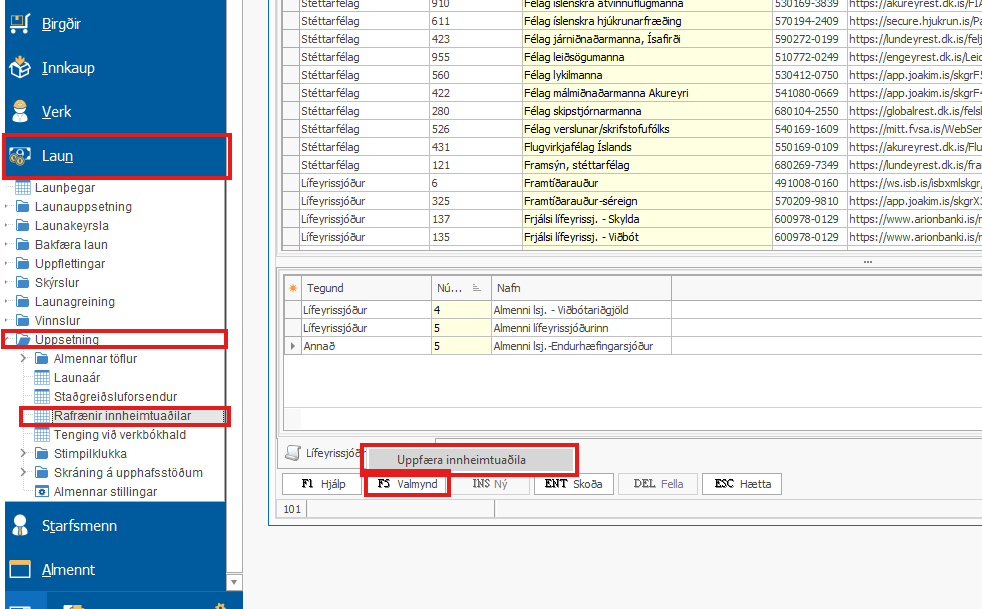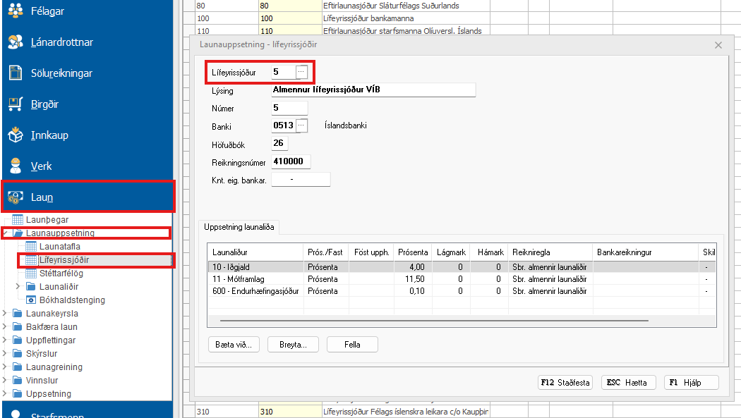 Breyta lífeyrissjóði launþega - Almenni-Lífsverk lífeyrissjóður Þeir launþegar sem hafa greitt í Lífeyrissjóð Verkfræðinga (820 og 821) eiga nú að greiða í Almenna-Lífsverk lífeyrissjóðinn (4 og 5). Mikilvægt er að fara yfir uppsetningu ...
