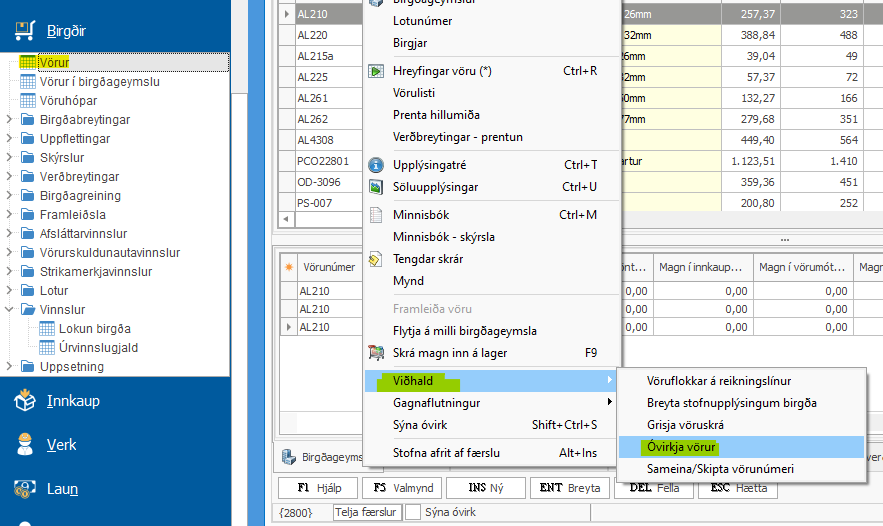 Talningardagbók stofnast þá með magn 0, næst er að bóka F5 Valmynd > Yfirfara skráningu
