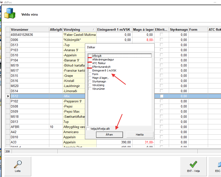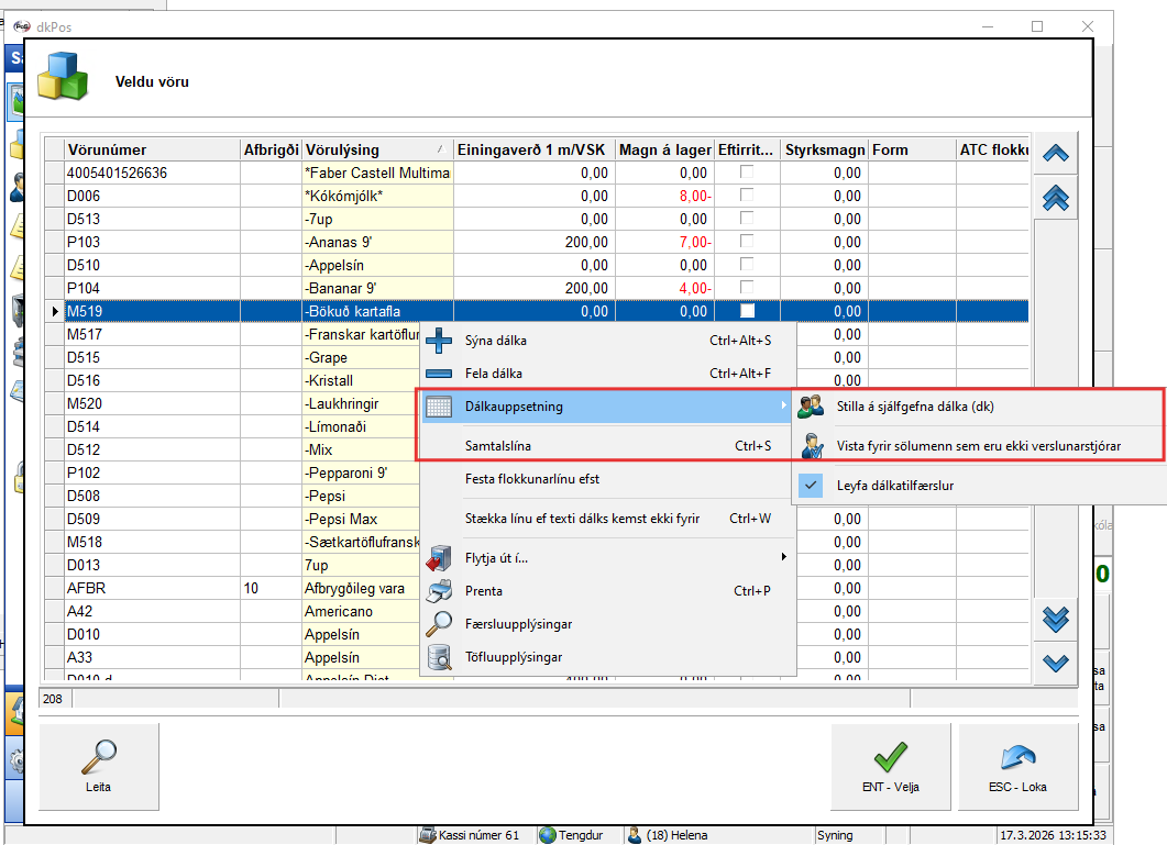 Hægt er að stjórna því hvort að viðkomandi sjái óvirkar vörur á afgreiðslukassa eða ekki með þessu haki hér: Ef hakið hér er í þá síar kassinn ekki út óvirku vörurnar og sýnir þær allar í vöru/birgðalistanum í kassanum. Ef hakið er ekki í þá sýnir ...