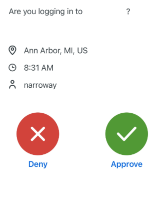 Þegar lokið hefur við uppsetningu á 2 þátta auðkenningunni þá þarf framvegis að samþykkja innskráningu með DUO appinu.