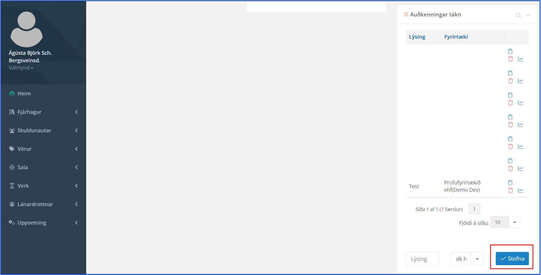 Ef á að vera hægt að framkvæma allt, þá er best að notandinn sem stofnar táknið sé stjórnandi (admin) í dkPlús.