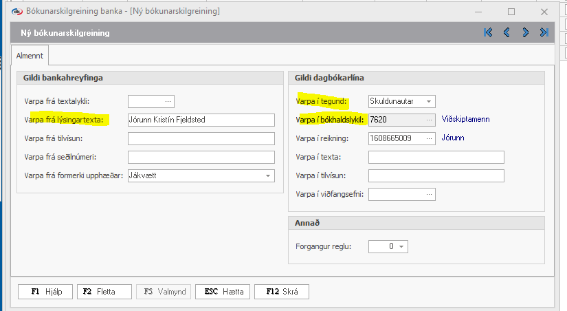 → nafn greiðanda/móttakanda stýrir reglunni