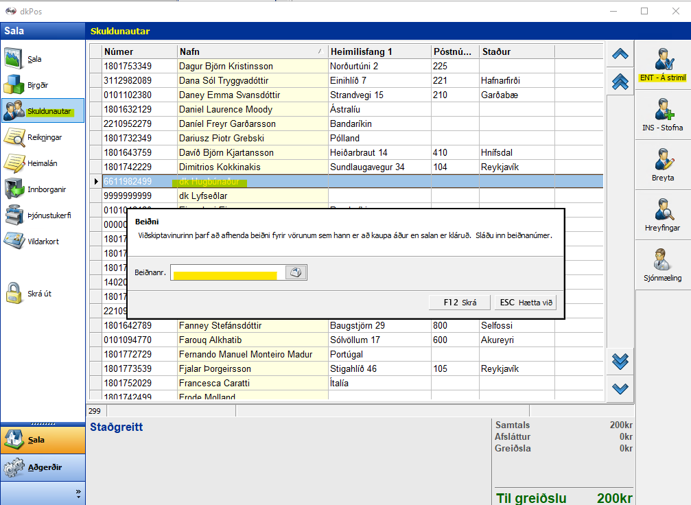 Passa líka að haka í beiðni á viðkomandi skuldunautaspjaldi í dk-inu undir flipanum ,,sala"
