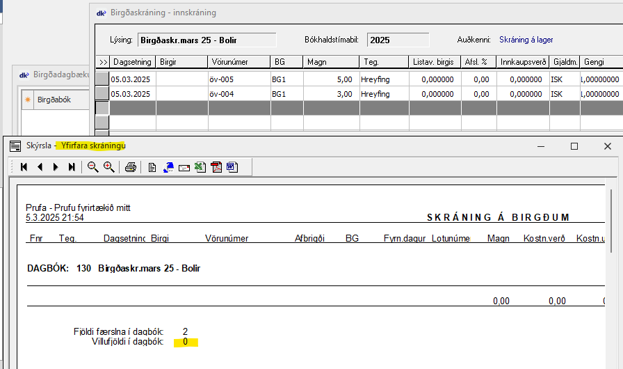 Ef birgðadagbókin er villulaus.