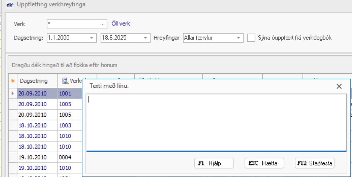 Þá kemur upp textabox - þar er hægt að breyta og skrá nýjan ítartexta - svo F12 staðfesta.