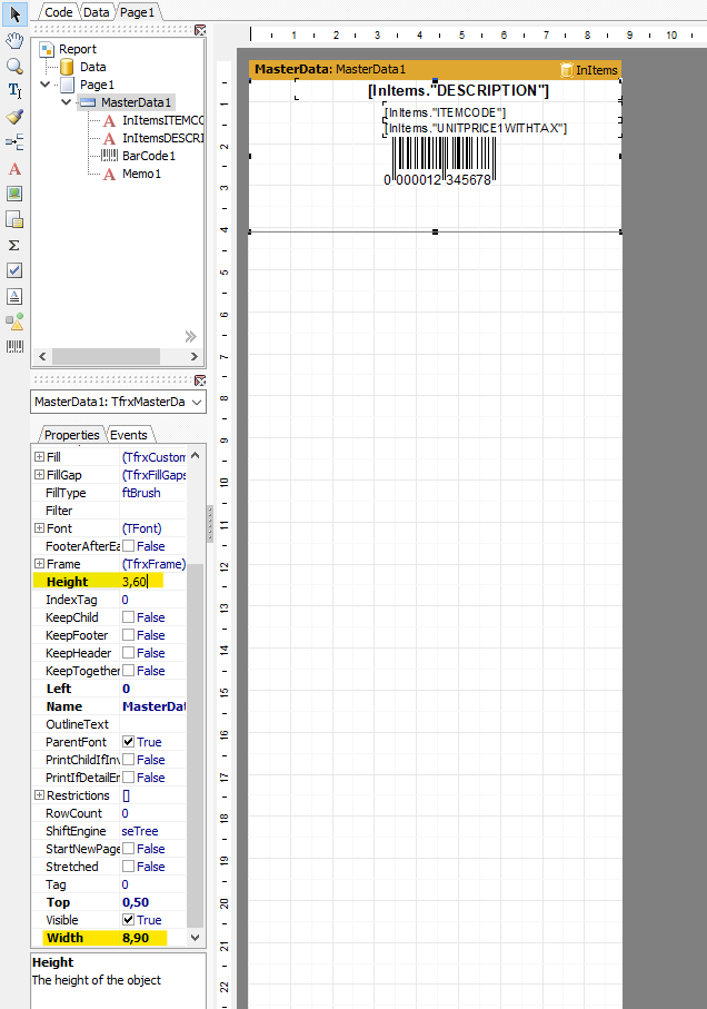 Breyta um stærð á límmiðaprentara (FastReport)
