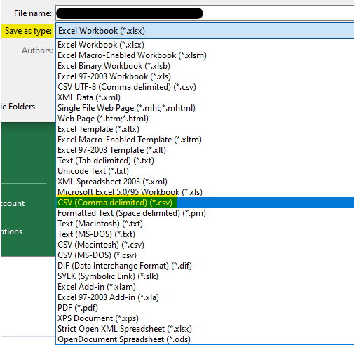 Þegar allar upplýsingar hafa verið skráðar í excel skjalið þarf að vista skjalið sem CSV skrá.