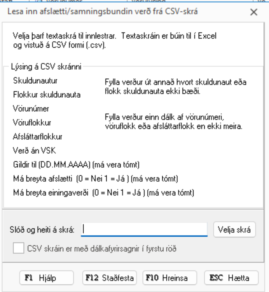 CSV innlestur afsláttartafla í Birgðakerfinu
