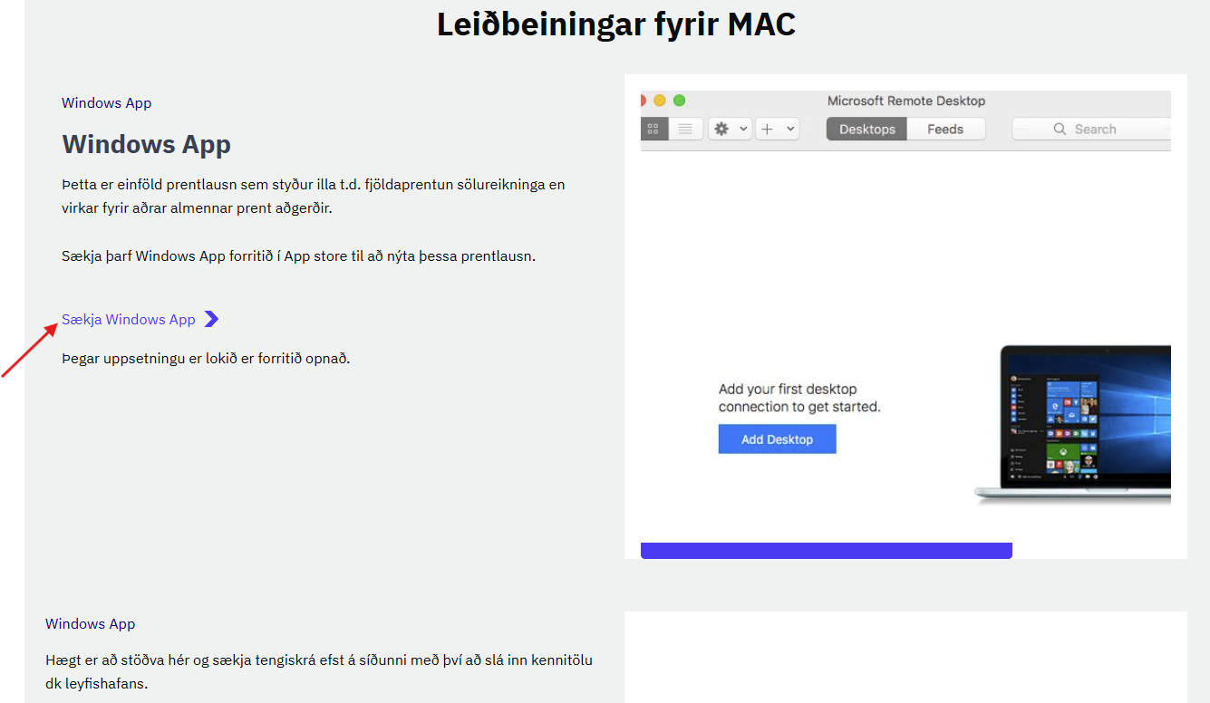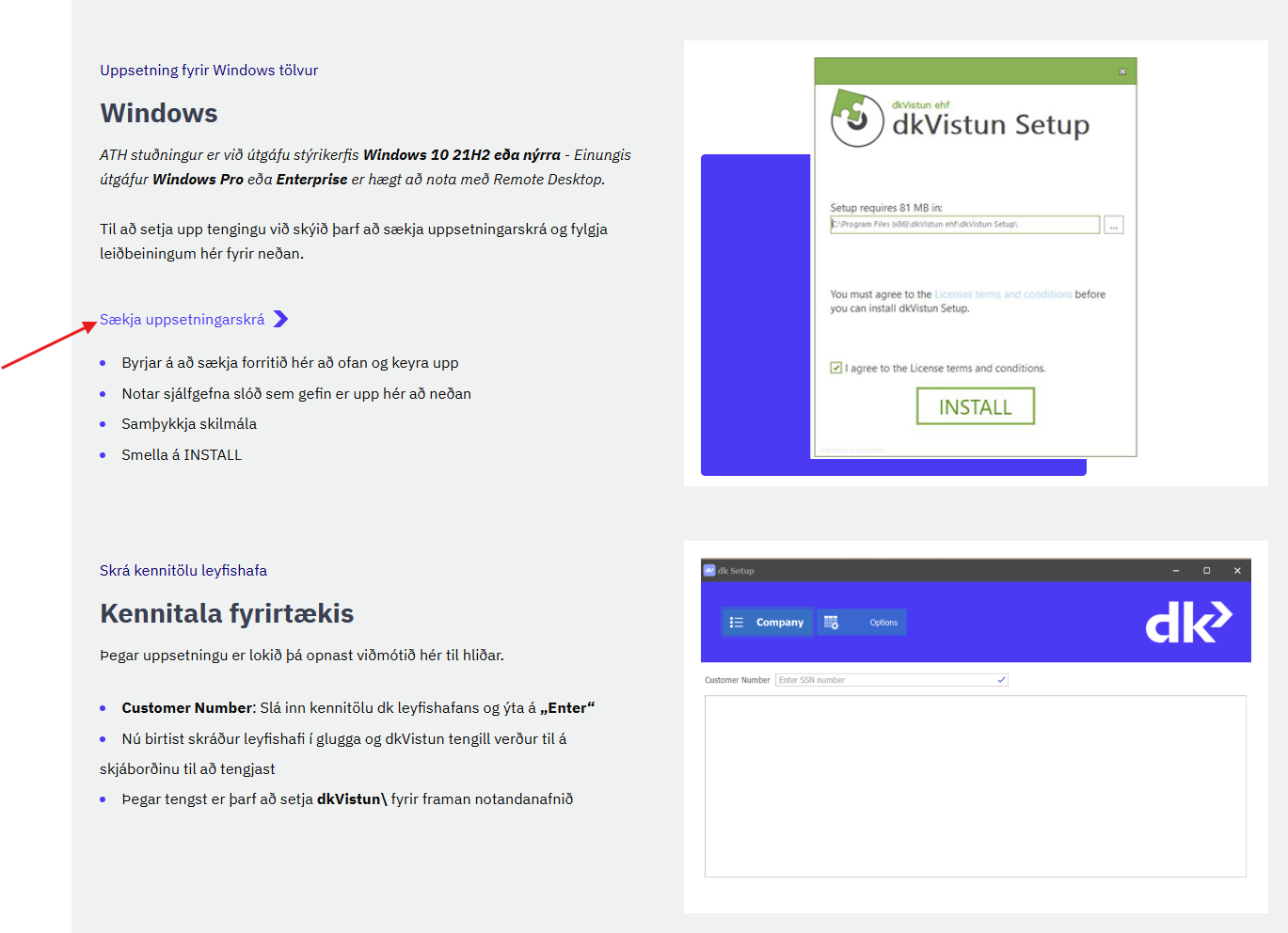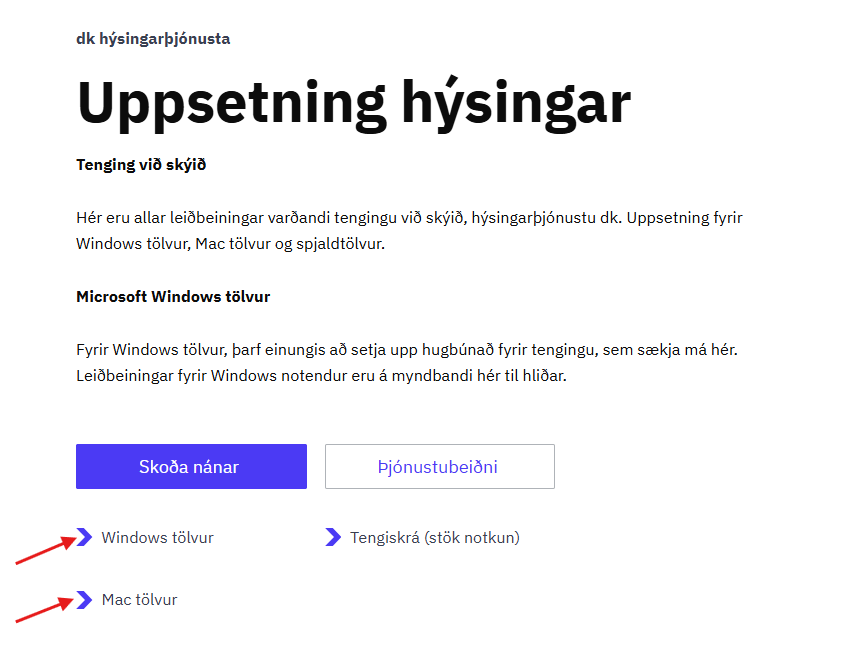 Til að tengjast dkVistun þarf að setja upp lítið forrit.
