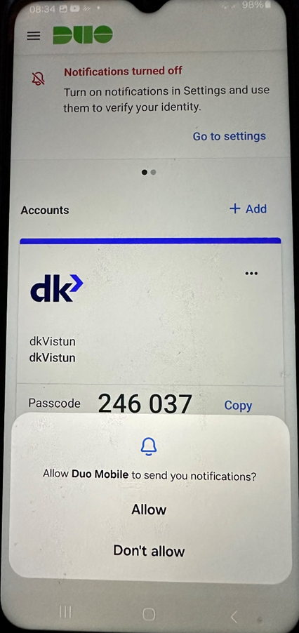 After DUO setup is complete, users must approve each login using the DUO Mobile app.