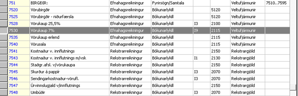 (Skipta þarft út innkaupabókhaldslyklum úr 21xx í 75xx)
