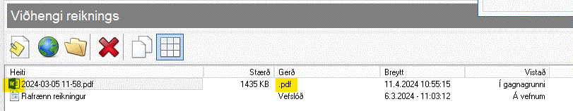 Þegar villa kemur við opnun á pdf skjali í viðhengi og merkið er Word en skráin er PDF