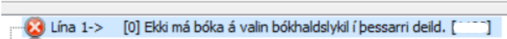 Ef merkt hefur verið við í deildauppsetingu að það megi bóka á tiltekna bókhaldslykla í ákveðinni deild þarf að merkja alls staðar að bóka megi á bókhaldslykla fyrir deildir. Villan gæti litið svona út: