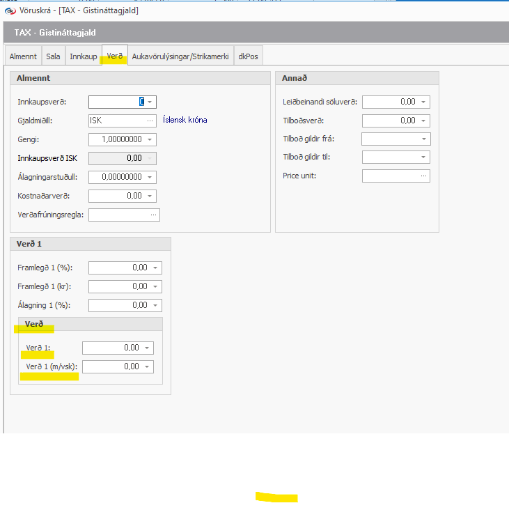 Síðan er sett inn Verð , ekki nauðsynlegt að setja bæði með vsk og án. dk reiknar sjálfkrafa - verð án vsk 600 og með 666