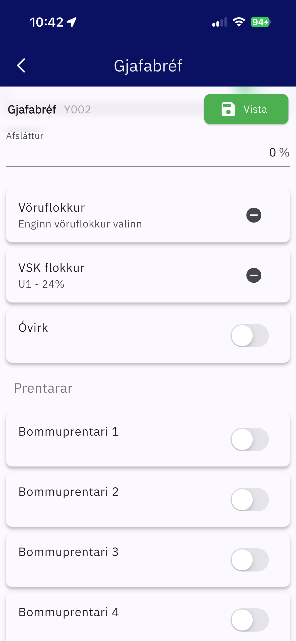 Prenta kennitölu á kvittun í kassa