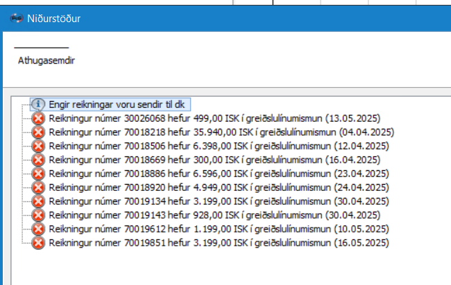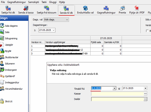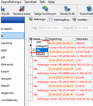 Velja senda til dk til að fá upp dagsetninguna þar sem villurnar byrja.