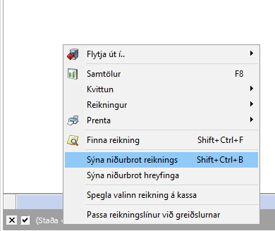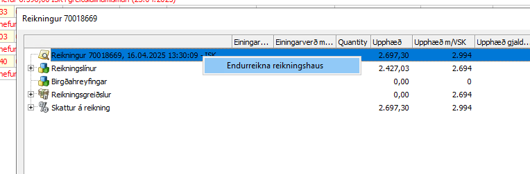Hægri smella svo á reikninginn og Endurreikna reikningshaus til að lagfæra.