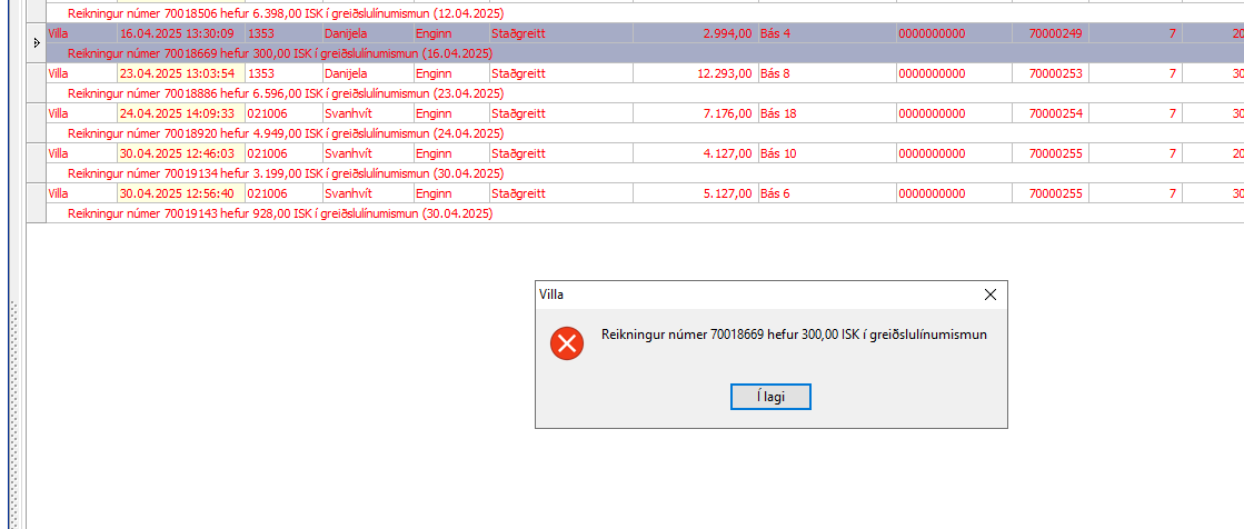 Greiðslulínumismunur lagfærður: