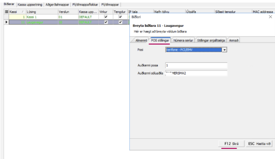 - Opna réttan kassa og fara í "POS stillingar"