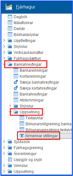 - Fjárhagur → Bankahreyfingar → Uppsetning → Almennar stillingar