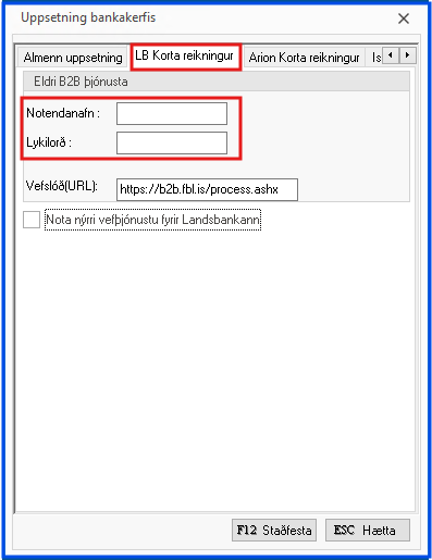 Þar skal velja þann flipa sem á við um ykkar banka.