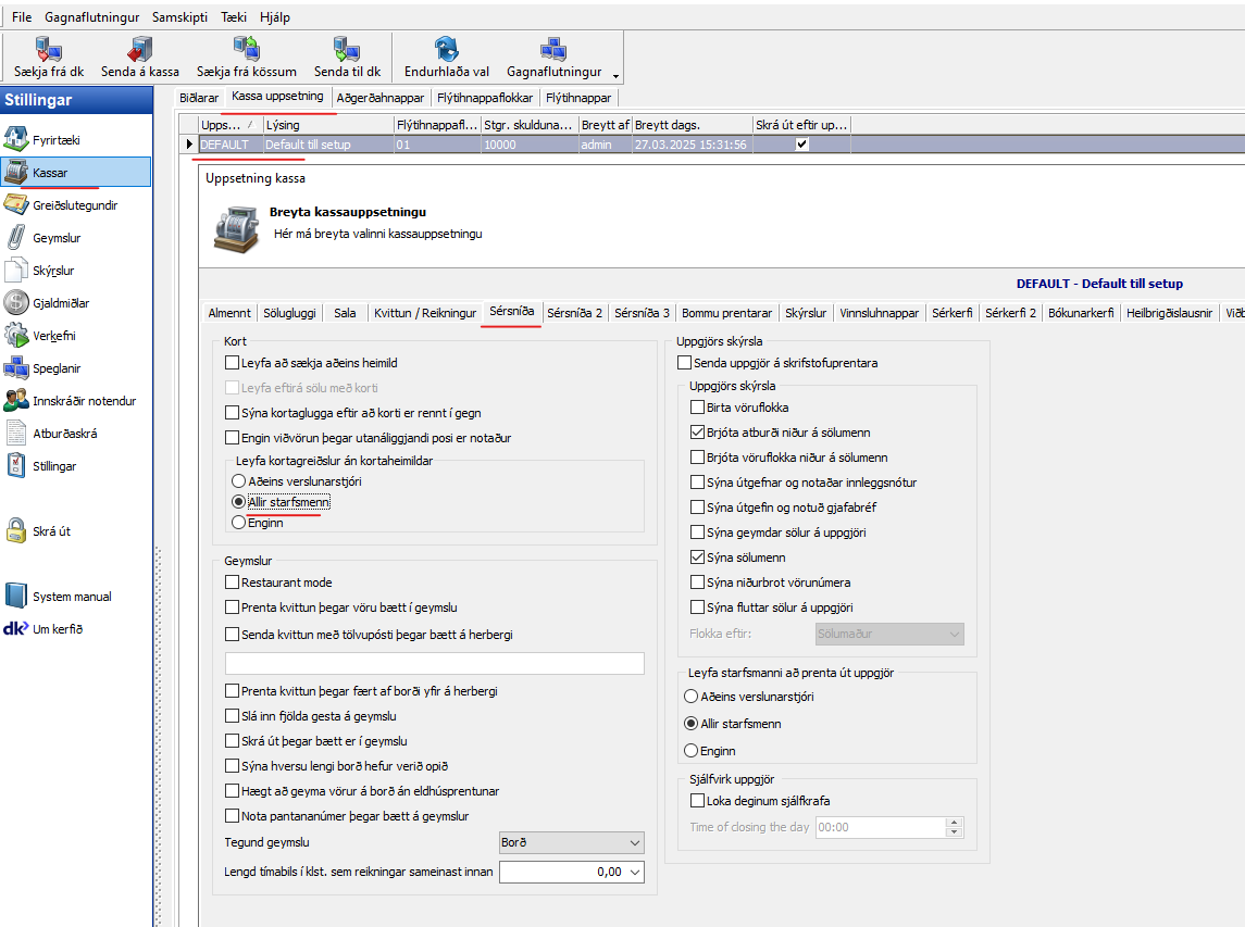 En til þess þarf að hafa þessi réttindi þá þarf þetta að vera í stillingum í kassa uppsetningu.