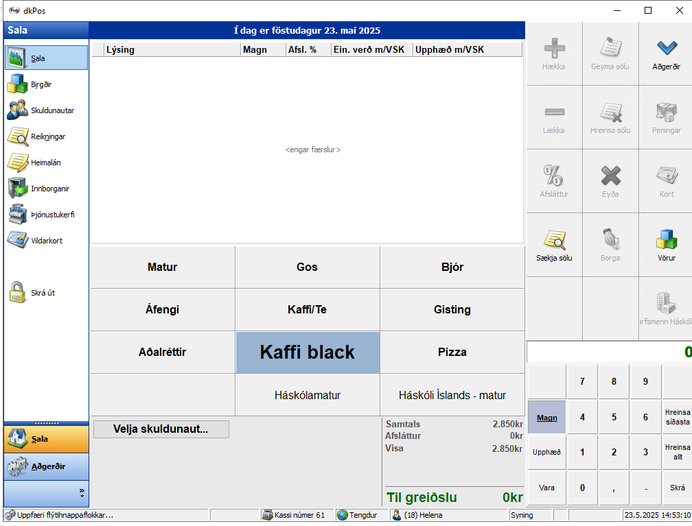 Svona klárum við söluna í gegnum kassakerfið til að hafa birgðirnar réttar og koma sölunni alla leið inn í bókhaldið ef að það er ljóst að færslan fór af korti viðskiptavinar.