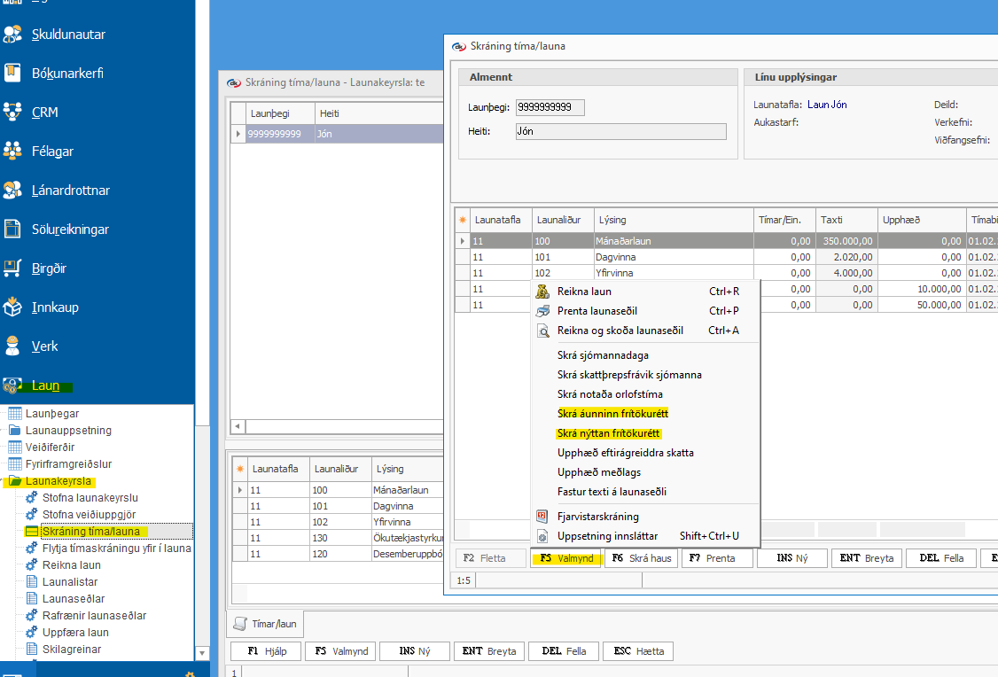 Í þessa launaliði er síðan hægt að skrá tíma sem tengjast frítökurétti og eru þeir sambærilegir þeim sem lýst er að ofan.