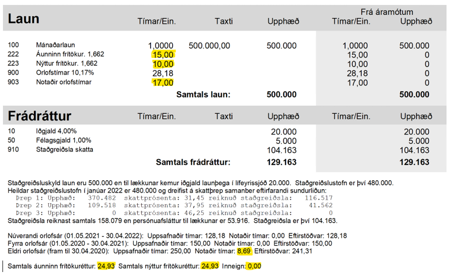 hann í Frítökuréttur – Nýttur og þá er sá launliður notaður fyrir nýtingu.