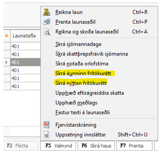 notaður fyrir frítökurétt. Ef hakað er við Frítökuréttur – Áunninn breytist