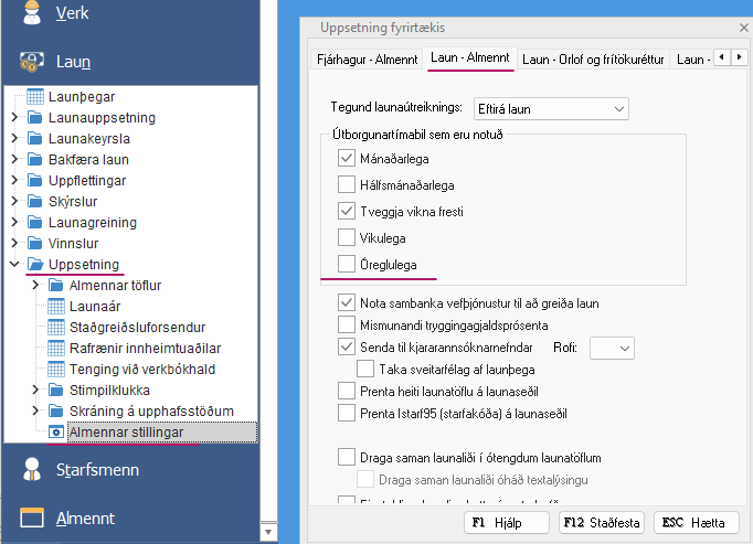 Inn á þeirra spjaldi skal fara í Laun - Útborgunartíðni og velja þar "Óreglulega".