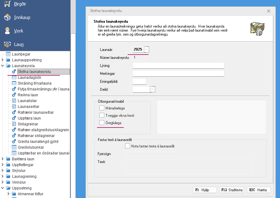 Að lokum þarf að stofna óreglulega launakeyrslu.