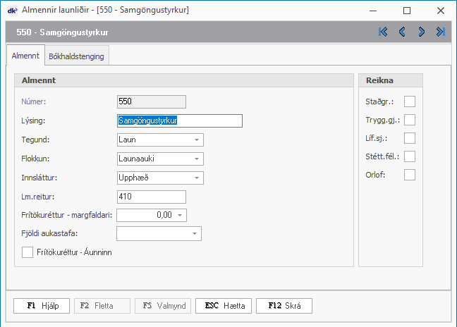 Samgöngustyrkur ætti að vera svona skráður í launakerfi dk: