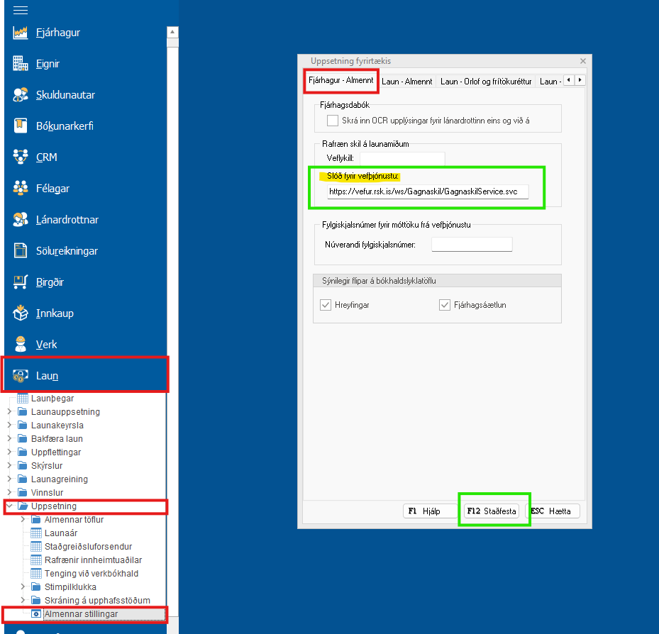 Slóðin undir "Rafræn skil á launamiðum" og "Slóð fyrir vefþjónustu" á að vera: https://vefur.rsk.is/ws/Gagnaskil/GagnaskilService.svc