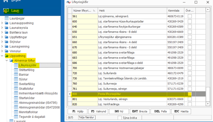 fara í Laun > Uppsetning > Almennar töflur > Lífeyrissjóðir og bæta