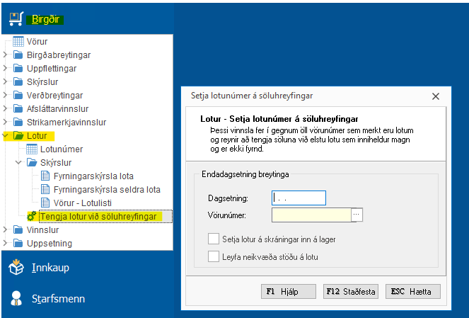 Birgðir > Lotur > Tengja lotur við söluhreyfingar