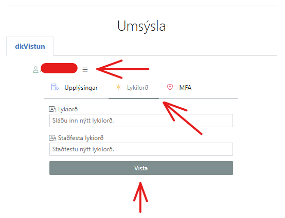 Þá er loks hægt að breyta lykilorðinu. Til þess að gera það þarf að: