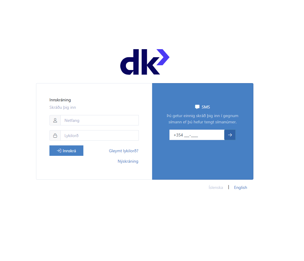 Nýskrá á mínar síður hjá dk hugbúanaði