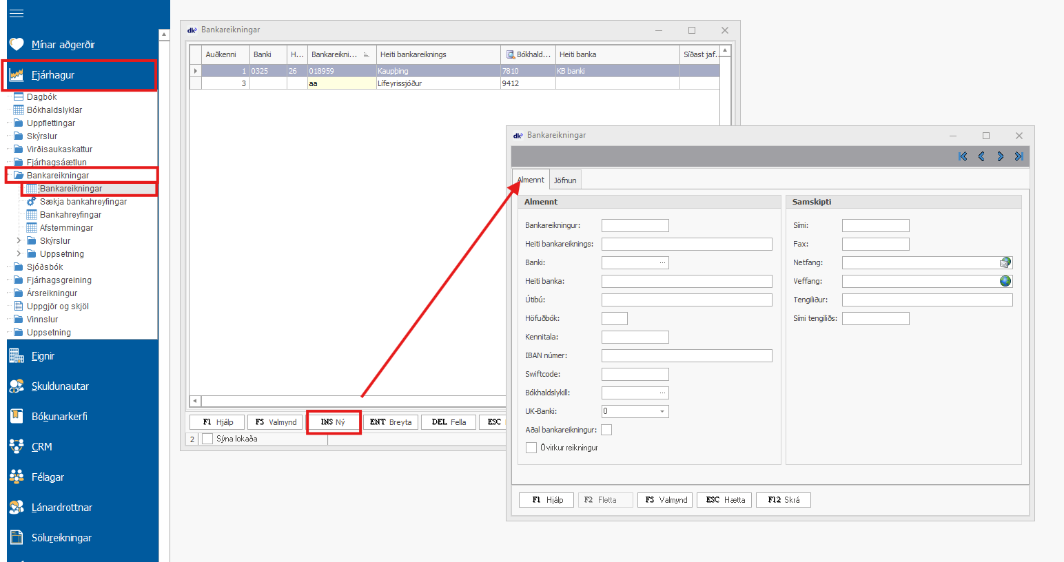 Undir Fjárhagur - Bankareikningar - Bankareikningar og INS ný