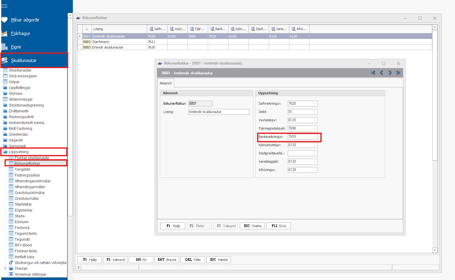 3. Tengja þennan nýja bókhaldslykil við bókunarflokk: