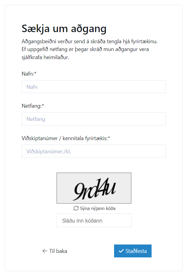 Þegar búið er að samþykkja ert þú komin með aðgang og getur innskráð inn á