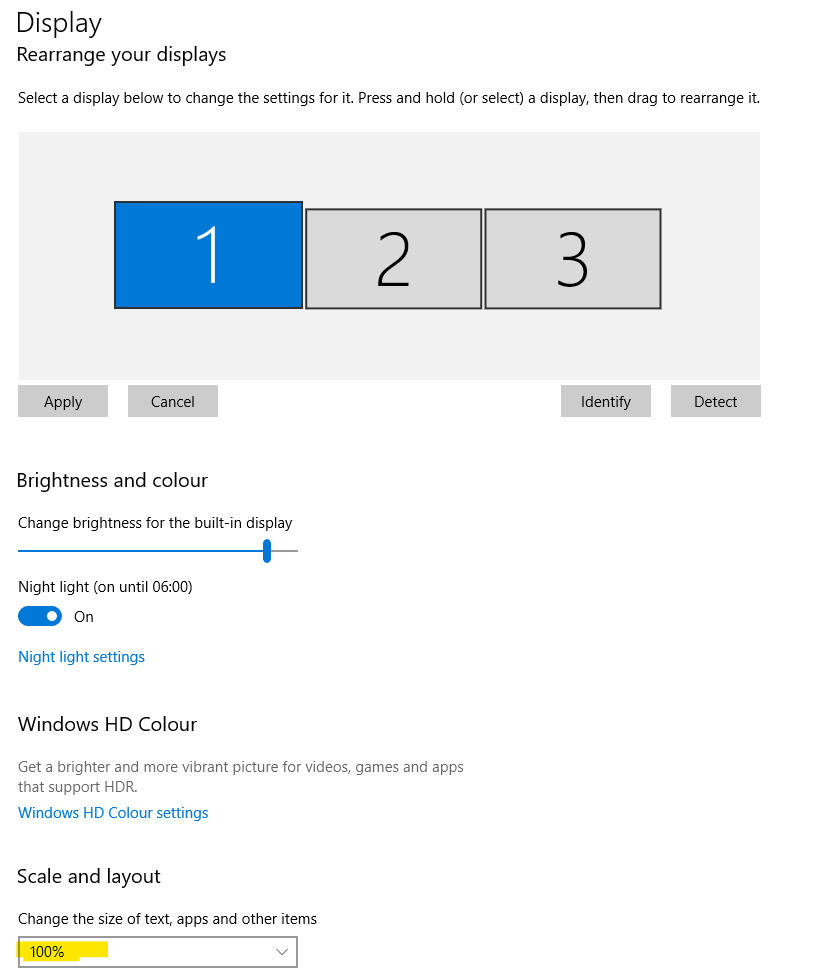 Hér að ofan sést stilling á sama skjá með 100% aðdrætti, athugið að Windows stýrikerfið er að mæla með meiri aðdrætti á skjánum samt sem áður.