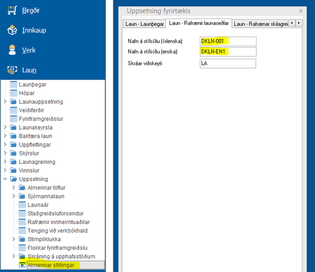 og velja Slóð fyrir launaseðlaskrá. Þessi slóð þarf að vera á