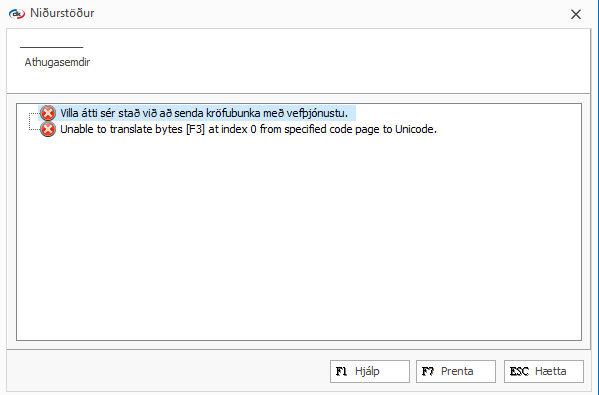 Sækja bankahreyfingar - Villa: Unable to translate bytes