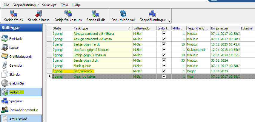 Þá birtist það hér í lista yfir verkefni sem kassinn sér um að sækja.