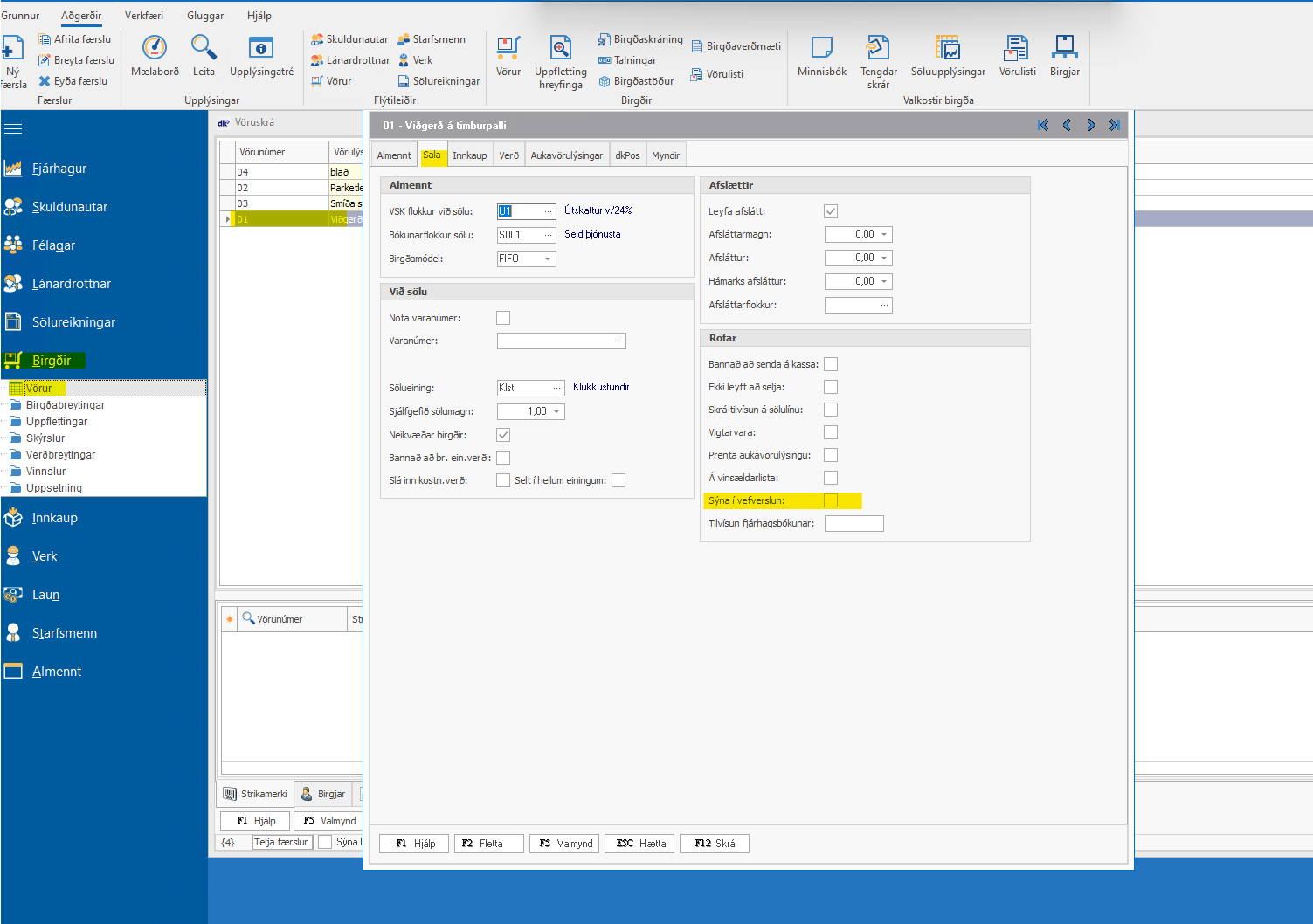 Ef að viðkomandi verslunarstjóri eða stjórnandi í verslun vill ekki að sölumenn sínir sjái ákveðnar upplýsingar skuldunauta eða ákveðnar upplýsingar í vörum þá er ráð við því. Þá þarf viðkomandi að skrá sig inn sem verslunarstjóri eða admin, ýta á ...