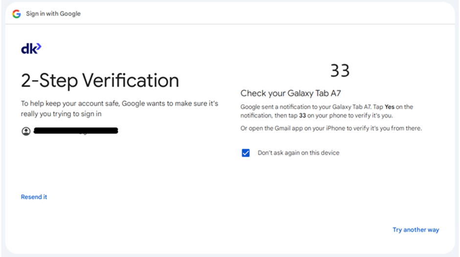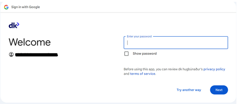 Eftir að netfangið er komið inn og búið er að ýta á next þarf að auðkenna sig.