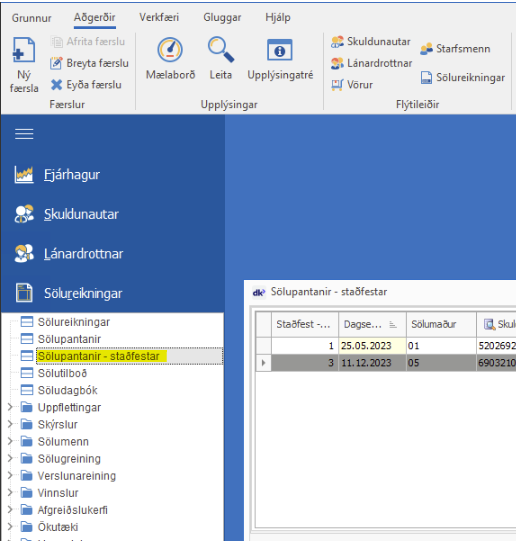 Staðfestar sölupantanir er viðbót í leyfi í dk.