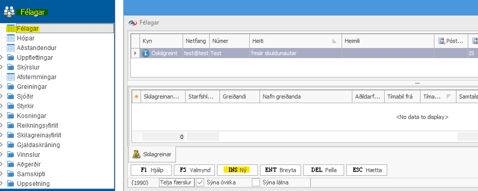 Hægt er að stofna félaga handvirkt undir Félagar > Félagar > INS Ný