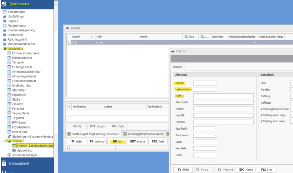 Setja þá læknanúmer í heimili 3 og læknaheiti í heimili 4.